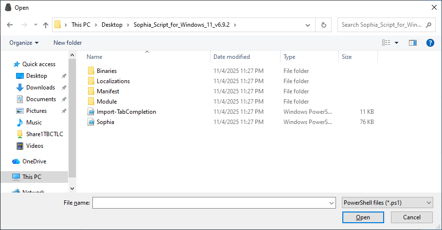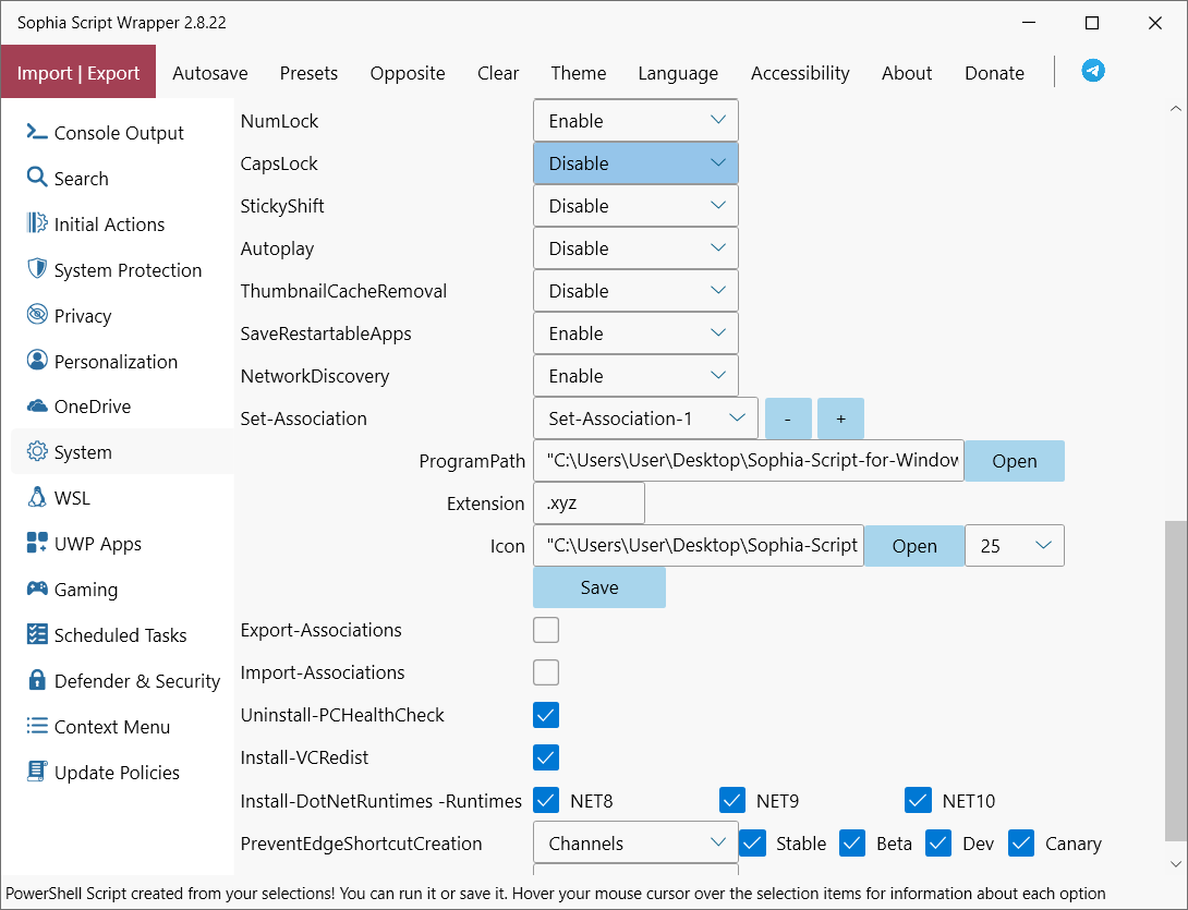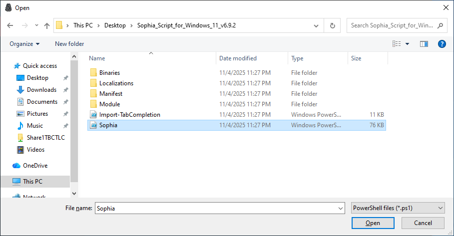 ►Sophia.ps1 : farag2 Original Windows PowerShell Script. Make a copy of this file for backup. Open this file to import preset and to get path for files to run directly the script you create.